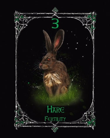 The power of three runs through Hare's energy, fertility, new beginnings, and opportunity; it's the sacred triad that opens the way forward.
